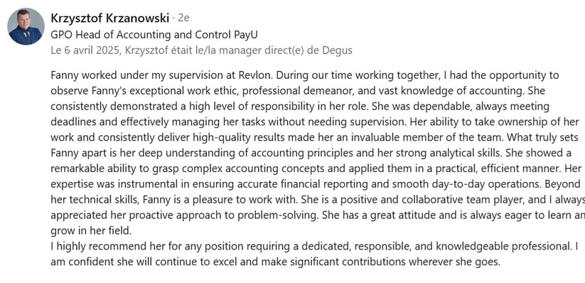 Fanny's got a Master's Degree in Economics and got the famous & very challenging professional french diploma DEC (Diplôme d'Expertise Comptable) which gives her the legal right to work as "Expert-Comptable" and "Commissaire aux Comptes" in France (Account Certification thanks to her DEC, the only diploma that allows the practice of functions as an expert accountant and statutory auditor). She can perform legal and contractual audit of financial accounts, analysis of business processes, information management, and internal systems to assess risk and identify the opportunities of improvement. Presentation of recommendations to management. Supervision of the Audit Team. Preparation of the financial accounts. Preparation of forecast budgets. Assistance to firms in difficulty. This is exactly where one of the main strengths of the PragmaCert Ltd project resides: it is the coherence between the risk and opportunity analysis carried out through our financial audit and the other services such as ISO9001, IATF16949, ISO27001, CMMI, ASPICE audits, which also aim to identify and escalate to management the main risks and improvement opportunities within the organization.