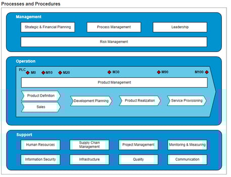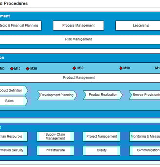I established the Process Improvement Plan (written in "Confluence" tool - see picture below) covering both the Company level processes required for an ISO 9001 certification (Management, Risks, HR, Finance, IT, Quality etc.) and the Automotive Software processes required for a compliance with ISO 26262 and A-SPICE (SW Project Management, Agile, SW Configuration Management, Peer Reviews, SW Quality Assurance, etc.)