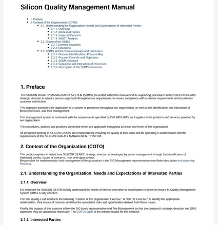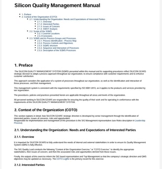 Silicon Gears ISO9001 Project: Quality Lead reporting to Company CEO & setting up corporate QMS