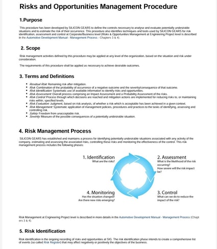 First time a concrete and formal Risk Management process has been established including a Risk Management Plan documented in Confluence and covering all requirements from applicable standards (the latest version of the IATF 16949 which now insists on the need to manage all risks properly, ASPICE Risk Management Process) and a formal Risk Tracker in Codebeamer ALM that implements Risk Mgmt Plan requirements.
